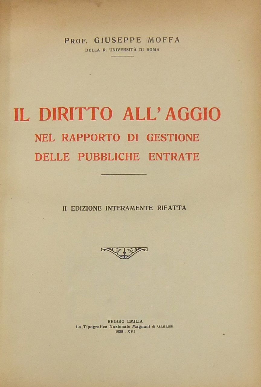 Il diritto all'aggio nel rapporto di gestione delle pubbliche entrate | Libri antichi e moderni | Moffa Giuseppe