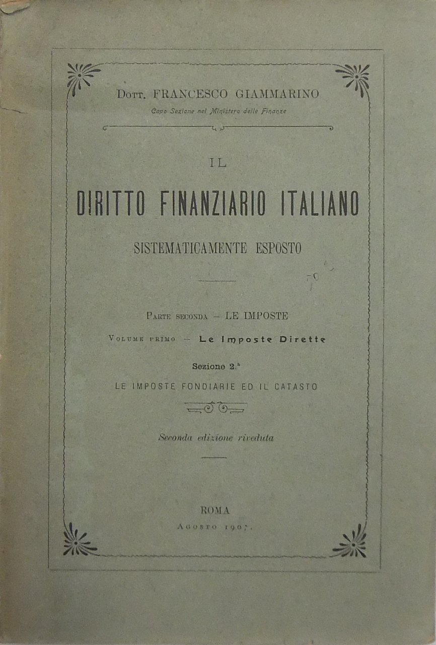 Il diritto finanziario italiano sistematicamente esposto. Parte seconda - Le imposte. Volume primo - Le imposte dirette: Sezione prima - La imposta sui redditi di ricchezza mobile; Sezione seconda - Le imposte fondiarie ed il catasto. Sezione terza - La riscossione delle imposte dirette | Libri antichi e moderni | Giammarino Francesco