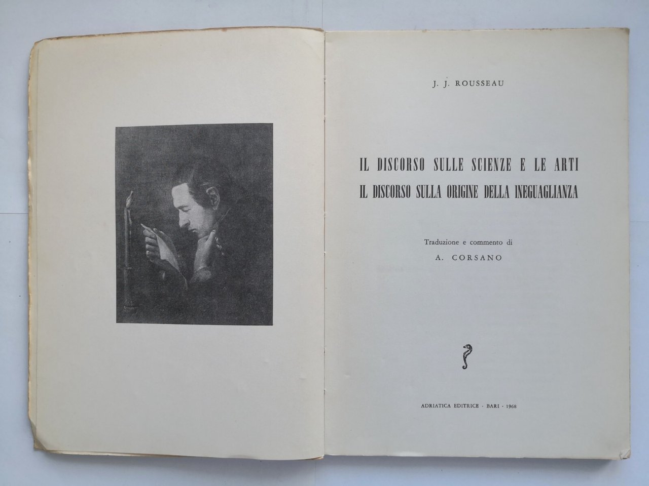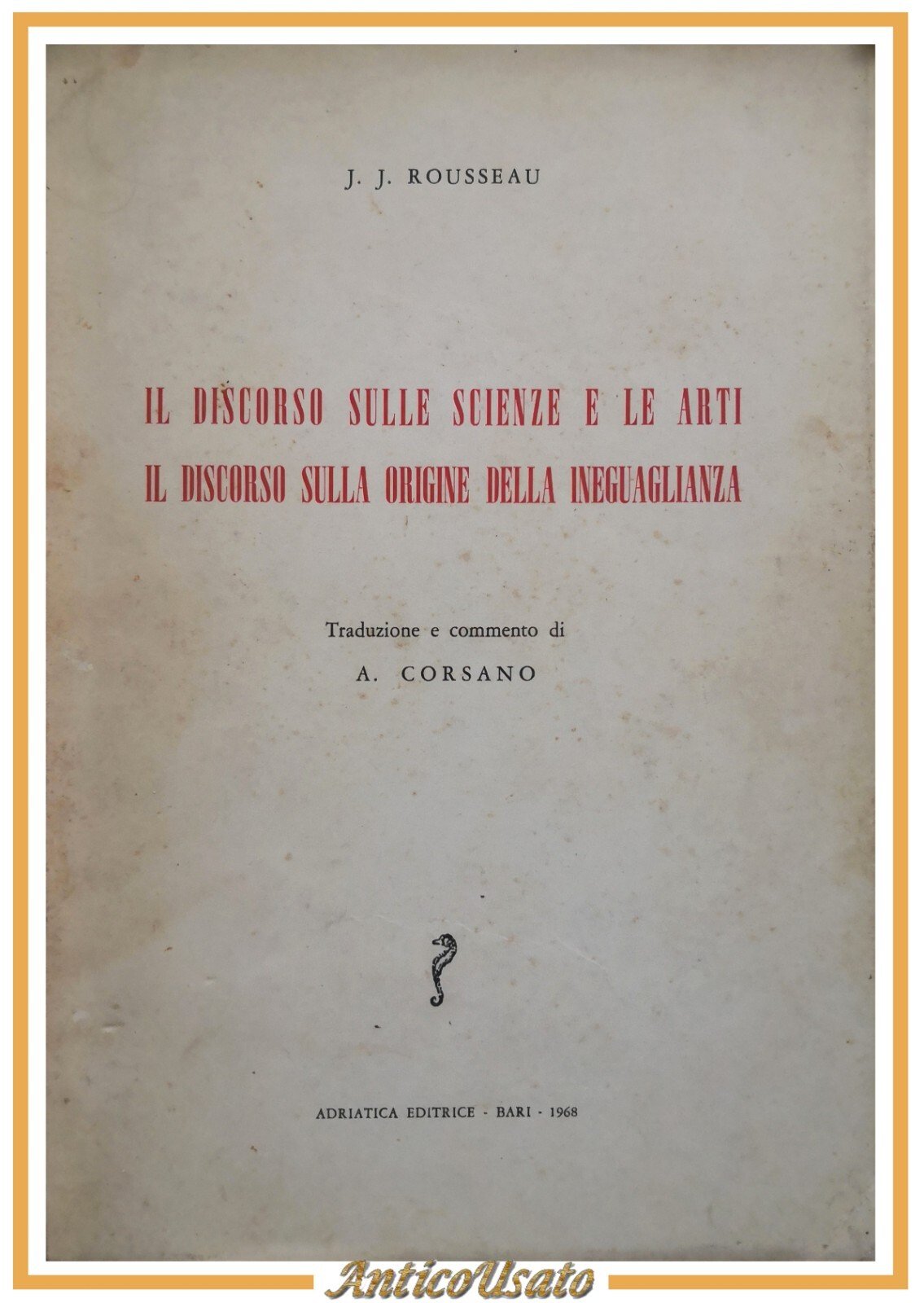 IL DISCORSO SULLE SCIENZE E LE ARTI di Rousseau 1968 Adriatica Libro filosofia | Libri antichi e moderni |
