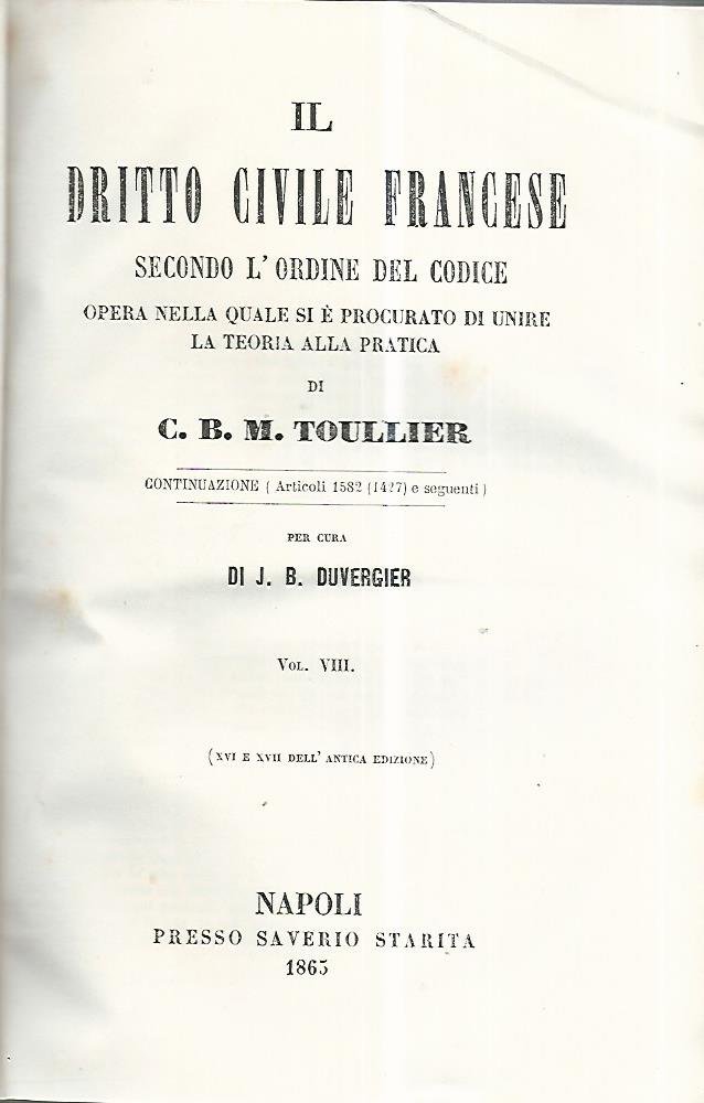 Il dritto civile francese. Volume VIII | Libri antichi e moderni | C.B.M. Toullier, ,C.B.M. Toullier