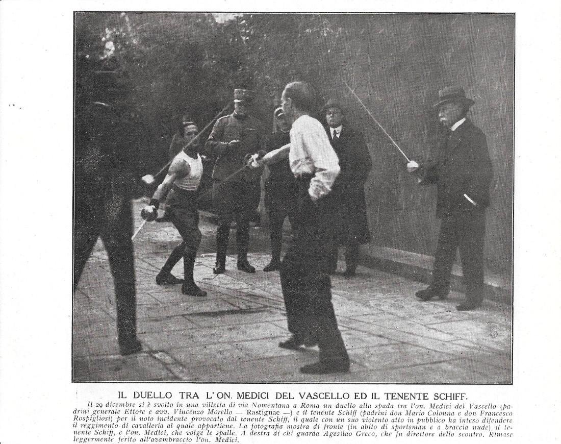 Il duello tra l'on. Medici del Vascello ed il tenente Schiff. Stampa 1919