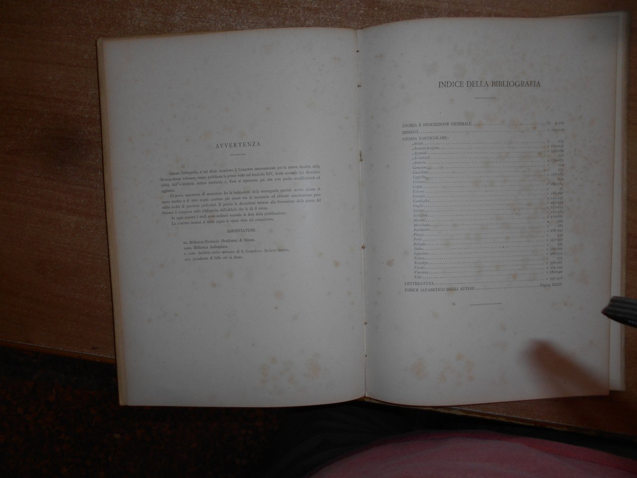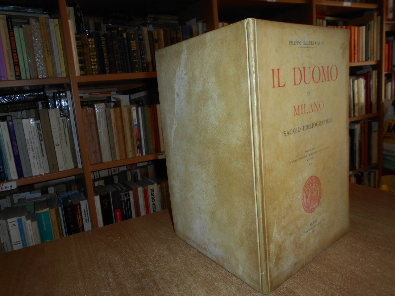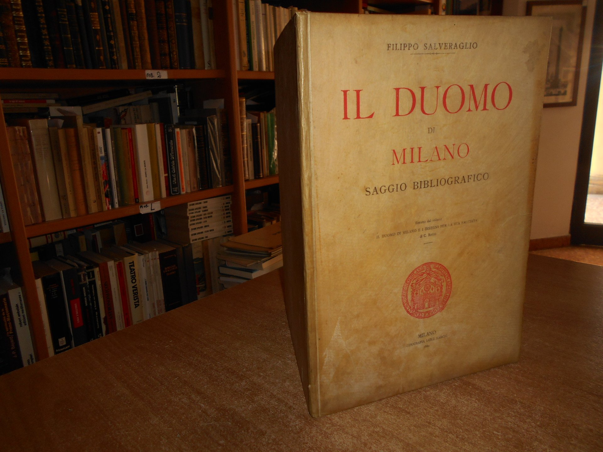 FILIPPO SALVERAGLIO. Milano, Tipografia Luigi Marchi, 1889. Il Duomo di Milano. Saggio Bibliografico. In-4°, cartonato edit. XXXVI, (1) pp. Lievi fioriture sparse ma ben conservato. Neg. arte mob. 11