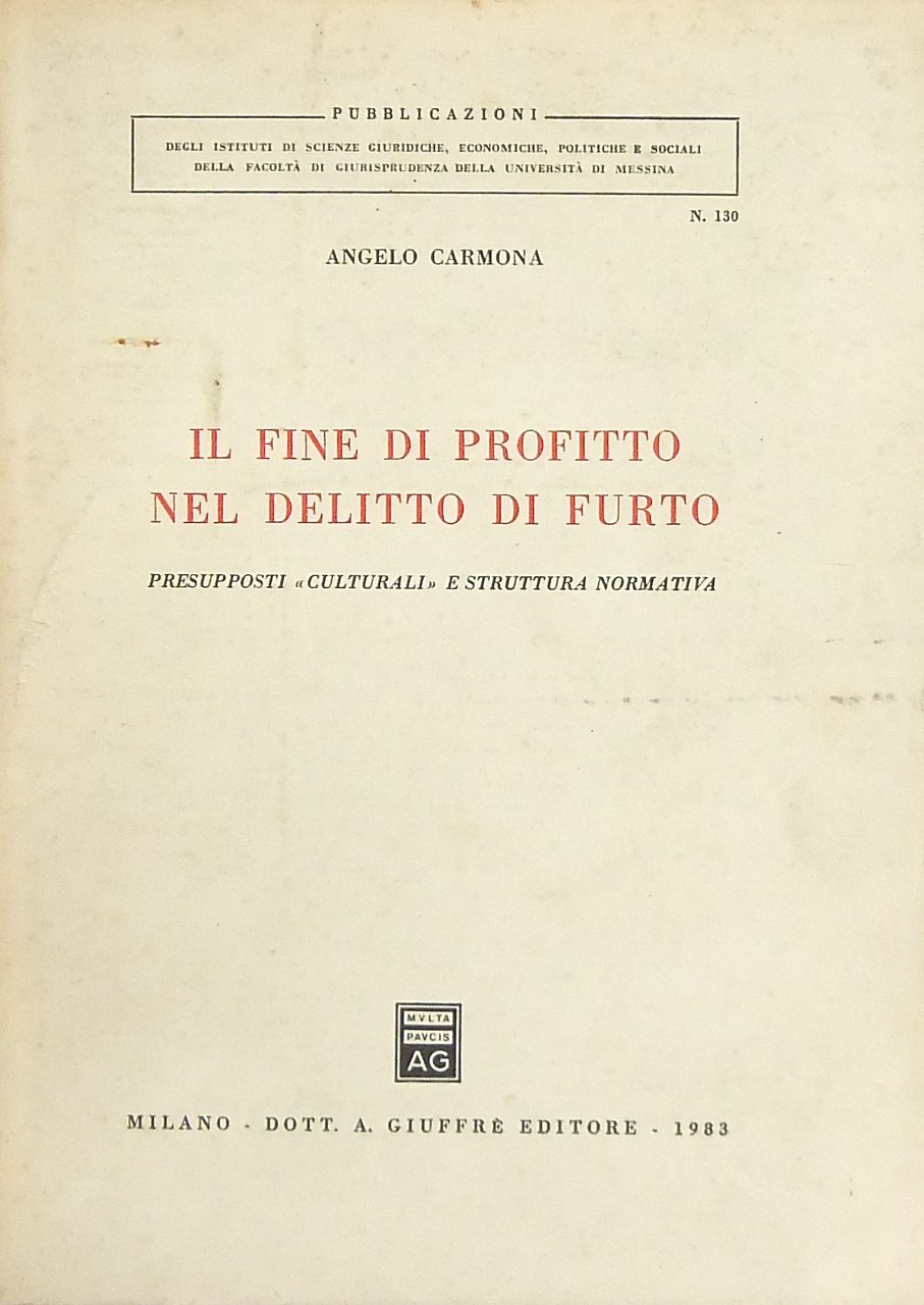 Il fine di profitto nel delitto di furto. Presupposti "culturali" e struttura normativa | Libri antichi e moderni | Carmona Angelo