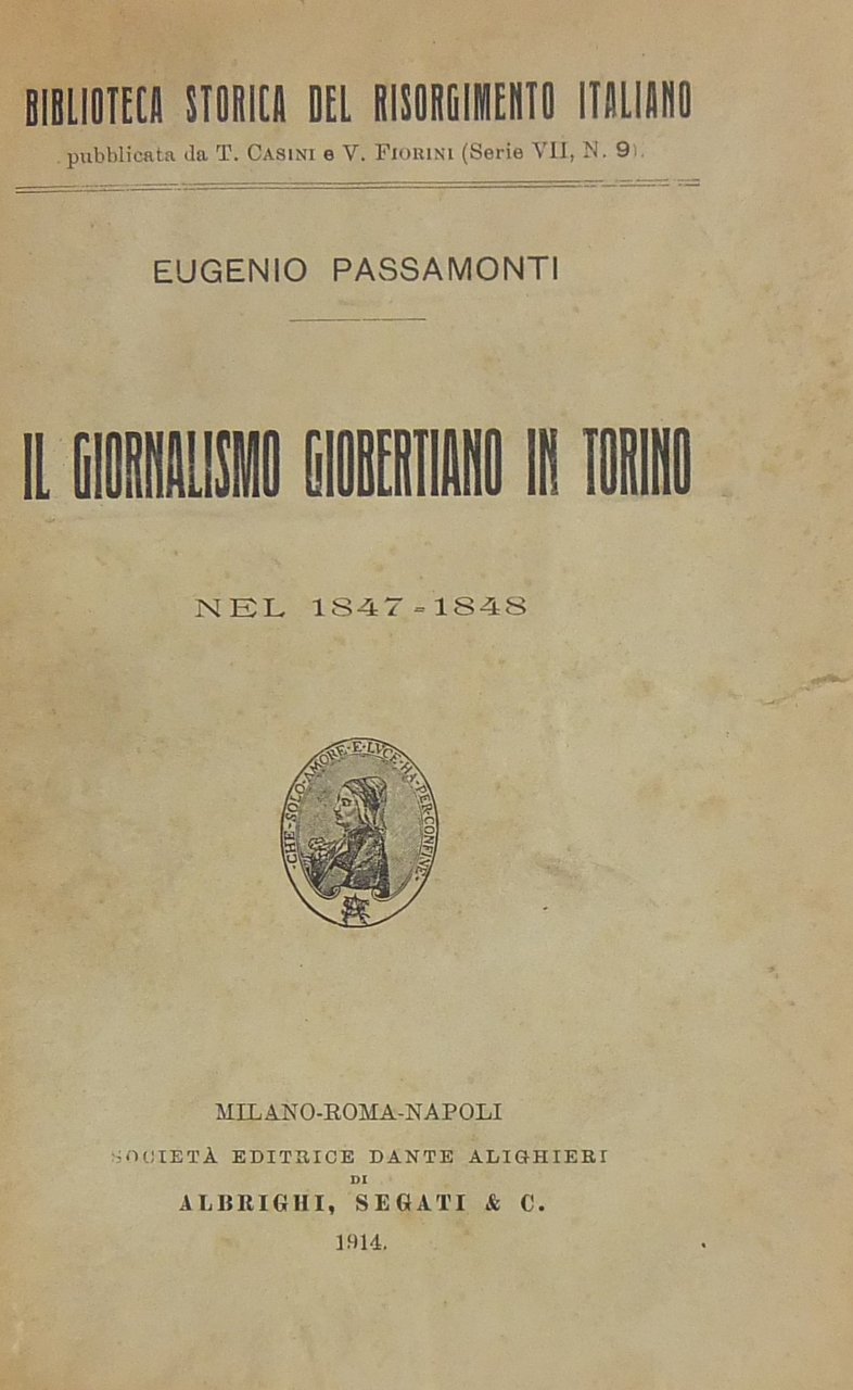 Il giornalismo giobertiano in Torino nel 1847-1848 | Libri antichi e moderni | Passamonti Eugenio