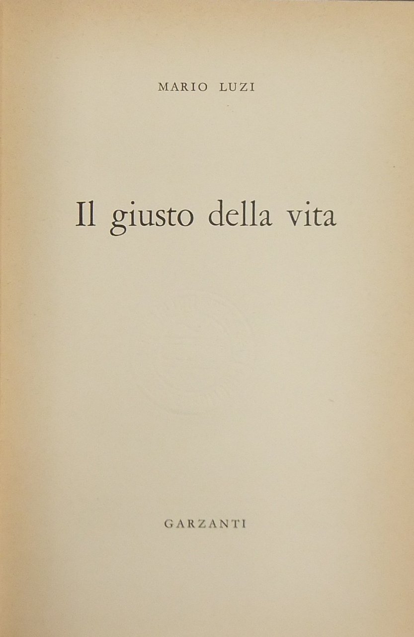 Il giusto della vita | Libri antichi e moderni | Luzi Mario (1914-2005)
