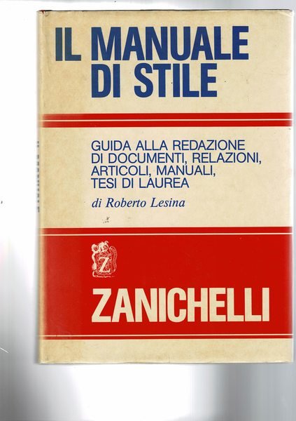 Il manuale di stile. Guida alla redazione di documenti, relazioni, articoli, manuali, tesi di laurea. Con la collaborazione di F.Boggio Merlo. | Libri antichi e moderni | Lesina Roberto.