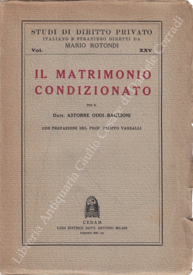 Il matrimonio condizionato. Con prefazione del Prof. Filippo Vassalli | Libri antichi e moderni | Oddi Baglioni Astorre