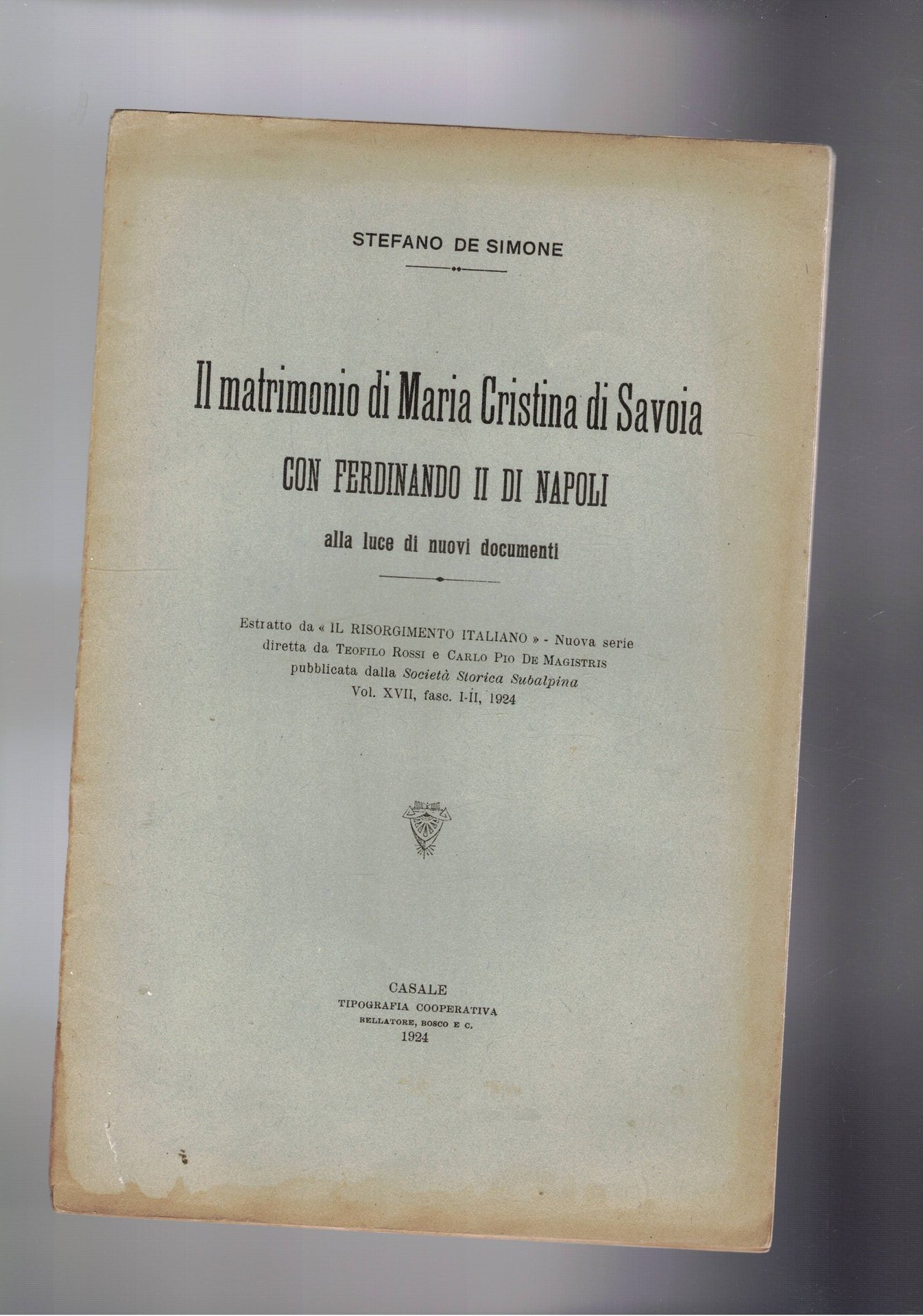Il matrimonio di Maria Cristina di Savoia con Ferdinando II di Napoli alla luce di nuovi documenti. Estratto. | Libri antichi e moderni | De Simone Stefano.