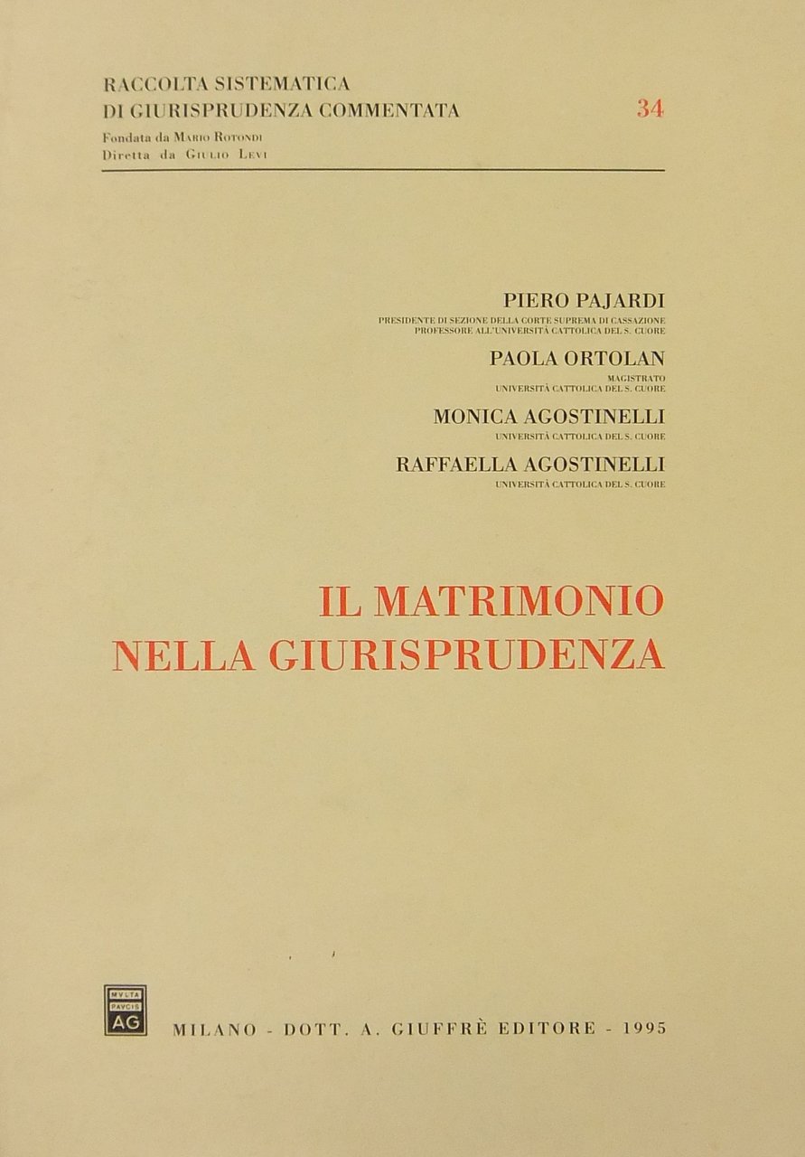Il matrimonio nella giurisprudenza | Libri antichi e moderni | Pajardi Piero - Ortolan Paola - Agostinelli Monica - Agostinelli, Raffaella