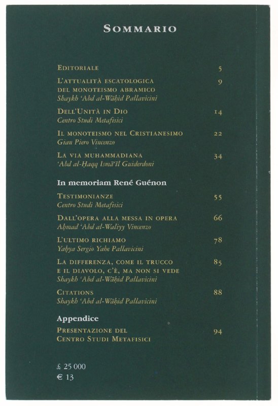 IL MESSAGGIO - RIVISTA DI STUDI METAFISICI. Anno I n. 1. Gennaio 2001 | Libri antichi e moderni |