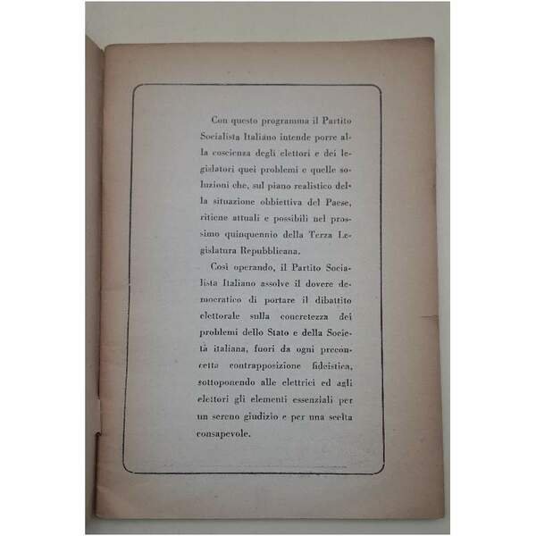 IL P.S.I. AGLI ELETTORI-IL PROGRAMMA DEI SOCIALISTI PER LE ELEZIONI POLITICHE DEL 1958(1958) | Libri antichi e moderni | Partito Socialista Italiano