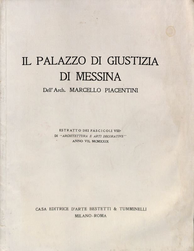 Il Palazzo di Giustizia di Messina. Estratto | Libri antichi e moderni | Piacentini Marcello
