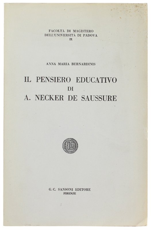 IL PENSIERO EDUCATIVO DI A.NECKER DE SAUSSURE. | Libri antichi e moderni | Bernardinis Anna Maria.