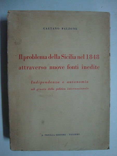 Il problema della Sicilia nel 1848 attraverso nuove fonti inedite (Indipendenza e autonomia nel giuoco della politica internazionale) | Libri antichi e moderni | Falzone Gaetano