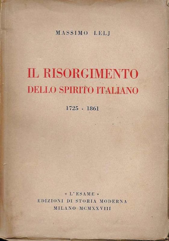 Il Risorgimento dello spirito italiano 1725 - 1861. | Libri antichi e moderni | Lelj Massimo.