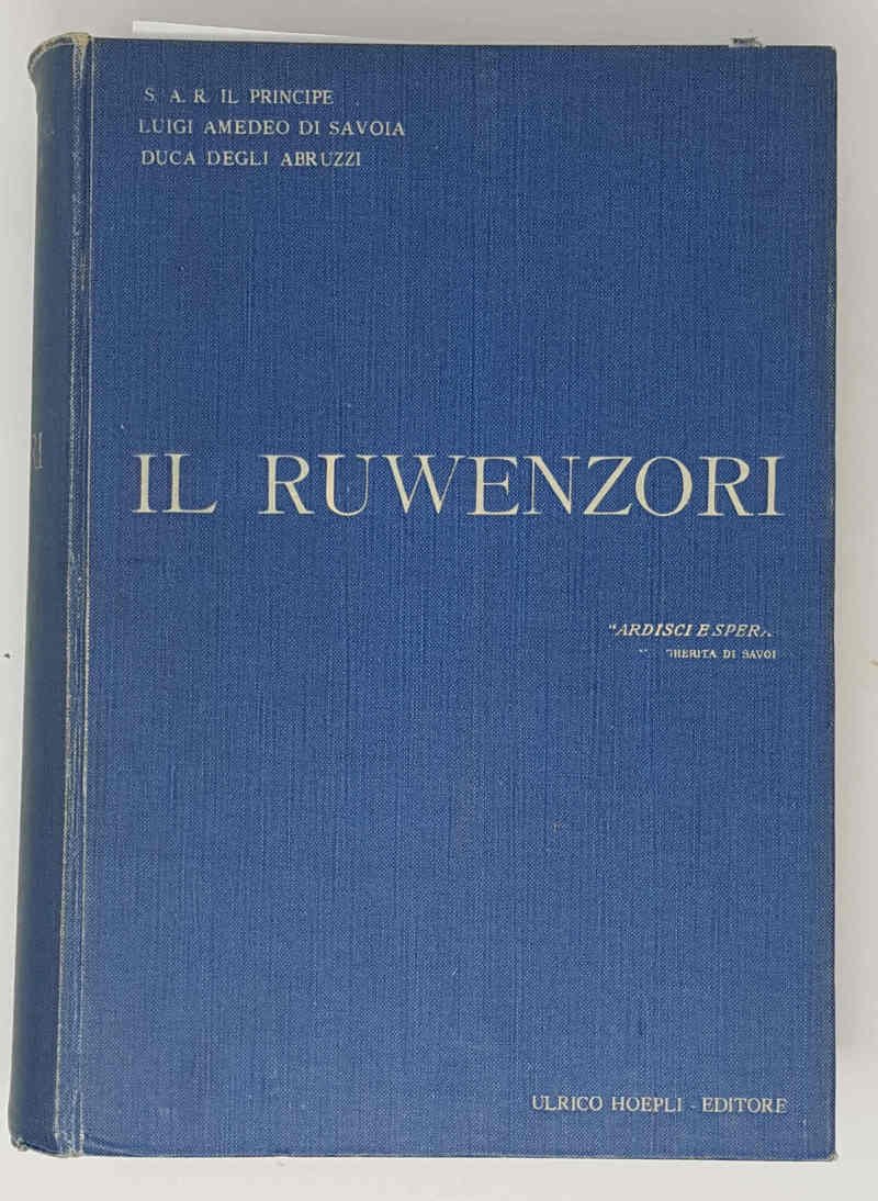>in-8 gr., pp. XII, 358, (2), leg. edit. t. tela con tit. impressi in bianco. Dedicato alla regina Margherita di Savoia. Opera magnificamente corredata di ricchissimo apparato illustrativo, per lo più superbe fotografie di V. Sella: antiporta a colori, 24 tavole fotogr., 5 grandiosi panorami fotogr. più volte ripieg. e 6 carte, il tutto f.t., oltre le 160 fotografie n.t. In fine le due Appendici scientifiche ad opera di L. Hugues, P. Campigli e D. Omodei. Prima edizione dell'opera più importante relativamnete al territorio esplorato: «Récit de l'expédition du Duc des Abruzzes en Afrique tropicale, avec la première ascension du Ruwenzori et de plusieurs autres sommets de la région en 1906» (Perret). Nello stesso anno fu tradotta in inglese e pubblicata a Londra e New York e l'anno successivo apparve anche in francese a Parigi. Esempl. perfetto. Perret 1656, note. ACL 85 e 195.