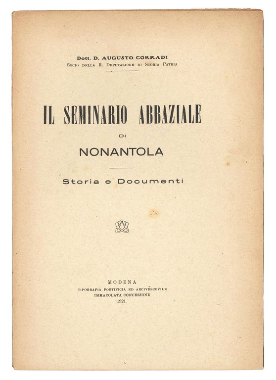 Il seminario abbaziale di Nonantola. Storia e documenti. | Libri antichi e moderni | CORRADI, Augusto