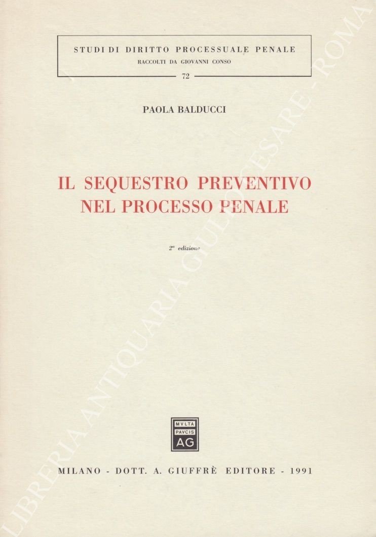 Il sequestro preventivo nel processo penale | Libri antichi e moderni | Balducci Paola