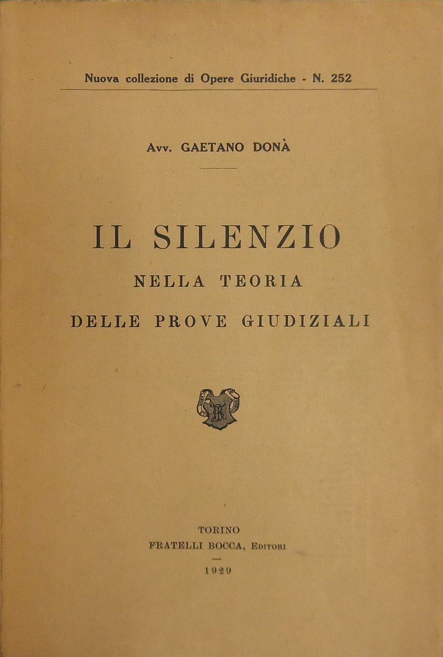 Il silenzio nella teoria delle prove giudiziali | Libri antichi e moderni | Donà Gaetano