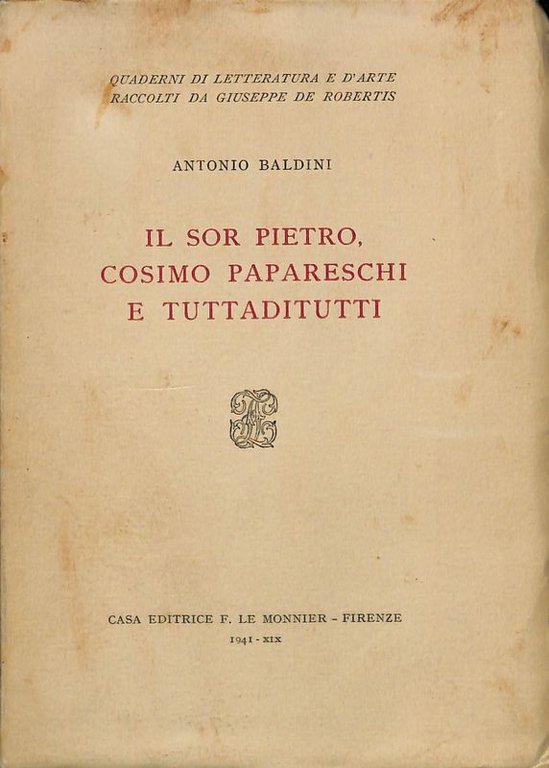 Il sor Pietro Cosimo Papareschi e tuttaditutti | Libri antichi e moderni | Baldini Antonio