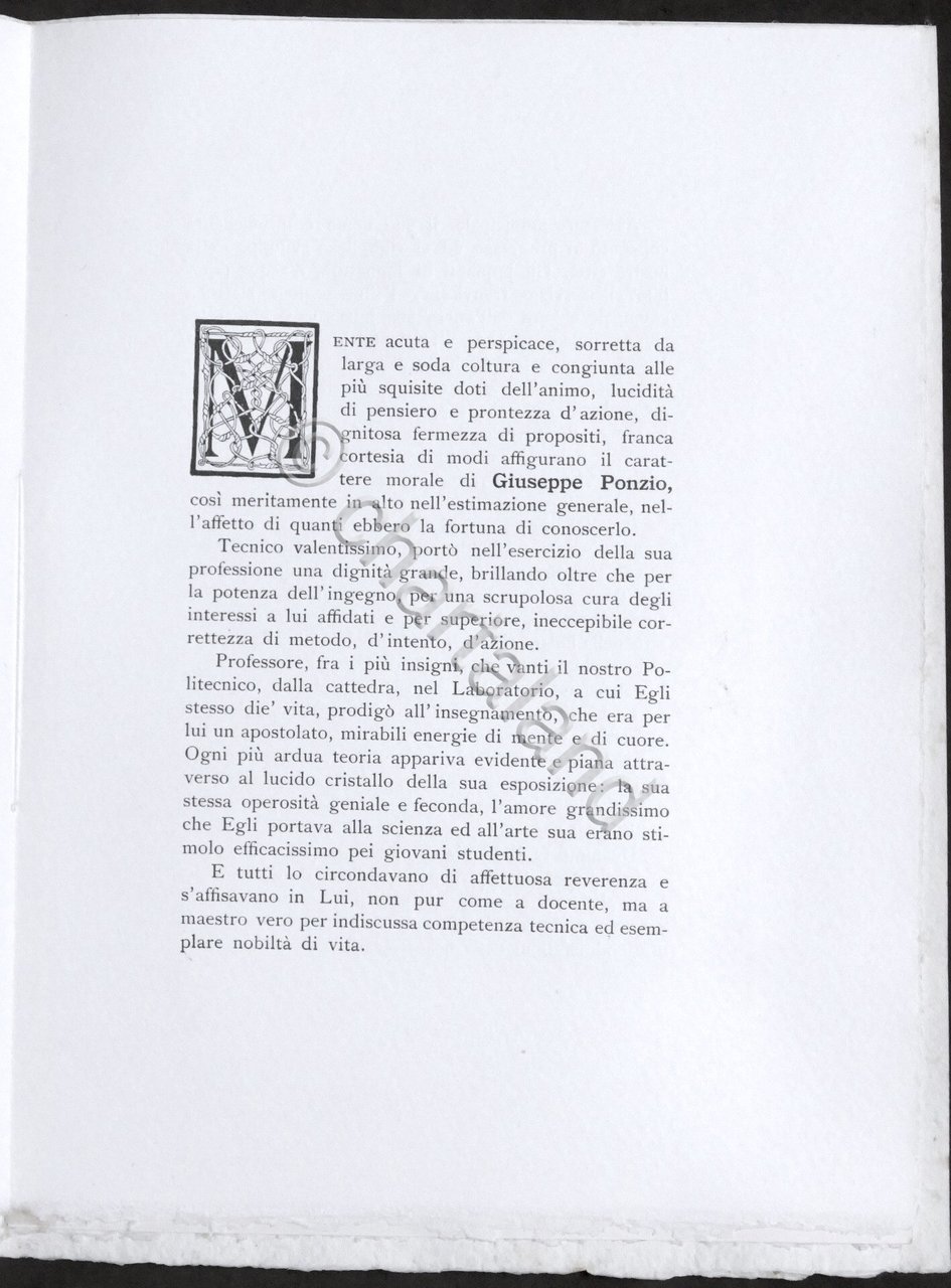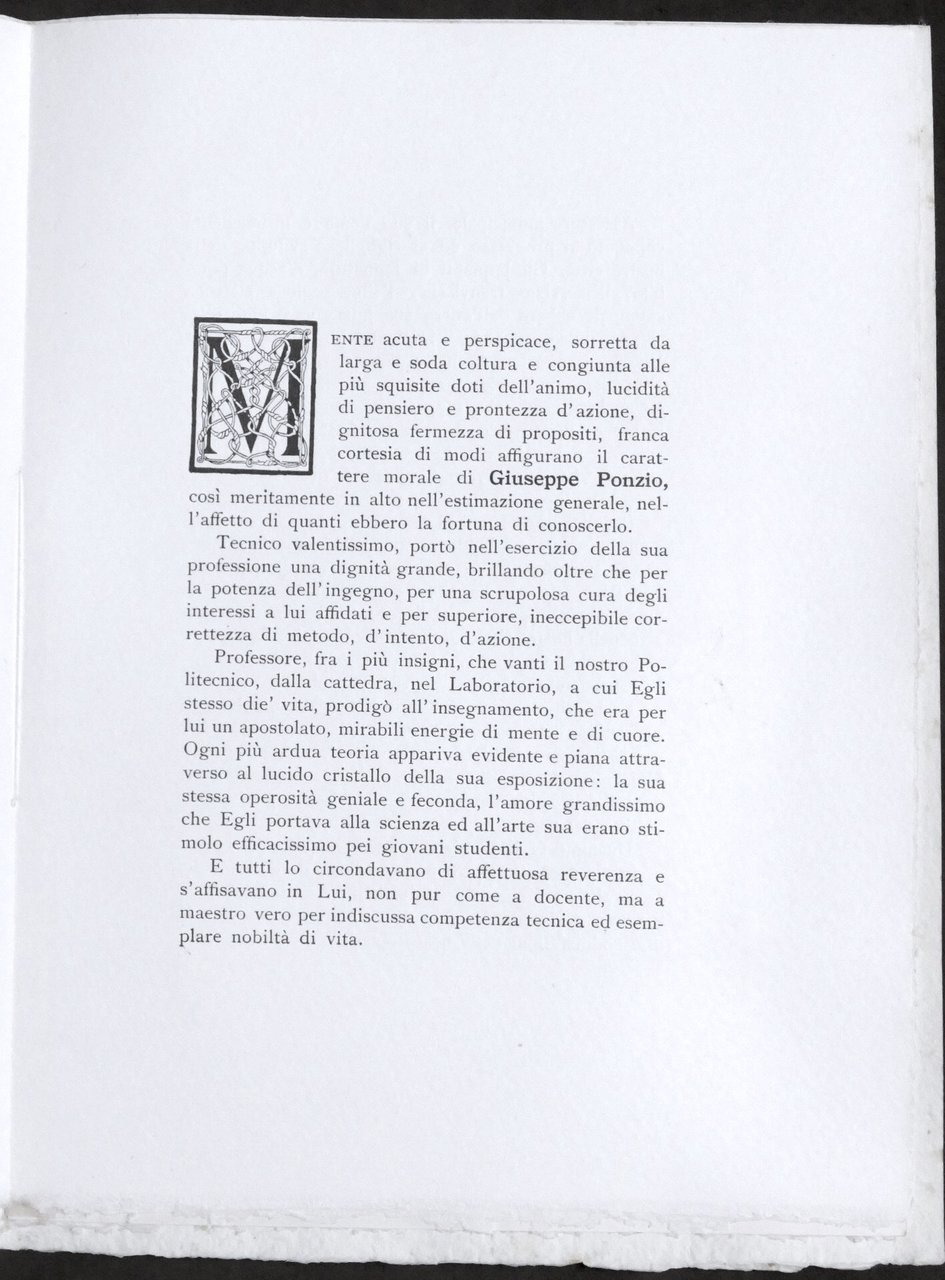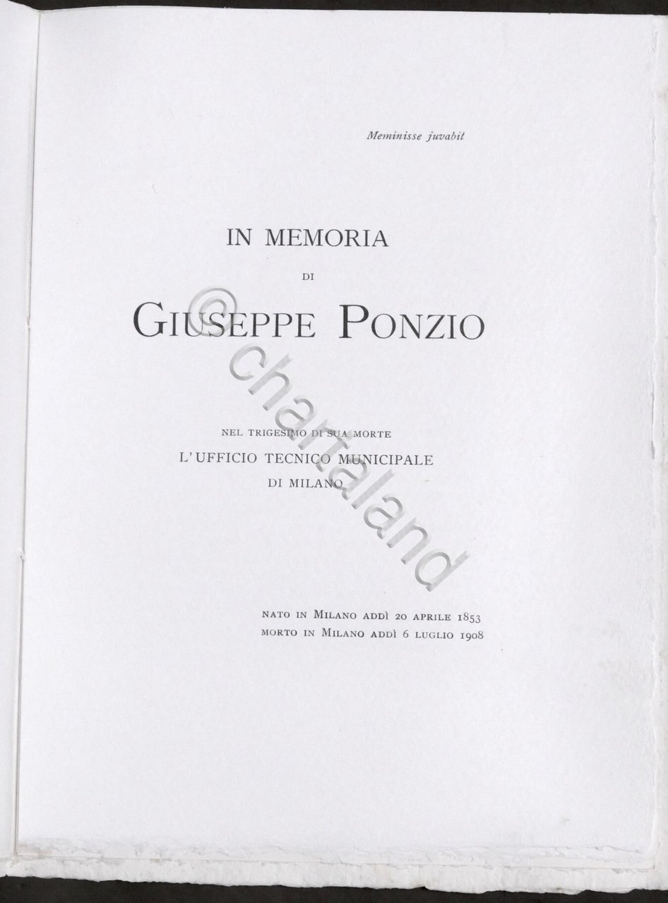In memoria di Giuseppe Ponzio nel trigesimo di sua morte - L'Ufficio Tecnico Municipale di Milano - 1938 Pag. 4, dimensioni: 16 x 22 cm ca. Lingua italiana. Condizioni generali molto buone.