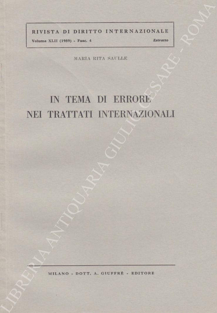In tema di errore nei trattati internazionali | Libri antichi e moderni | Saulle Maria Rita (1935-2011)