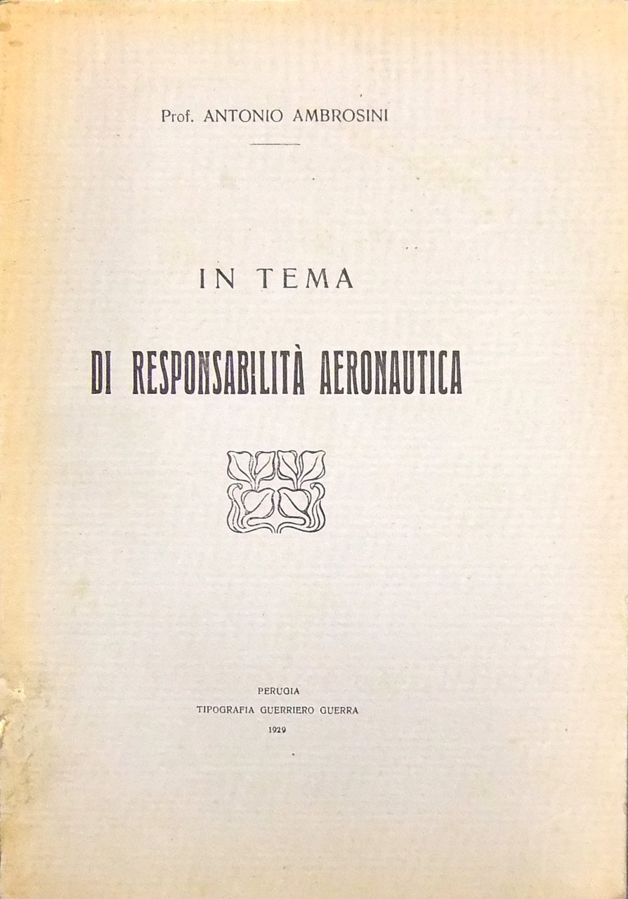 In tema di responsabilità aeronautica. Discorso per l'inaugurazione dell'anno accademico 1927-28 della R. Università di Perugia | Libri antichi e moderni | Ambrosini Antonio