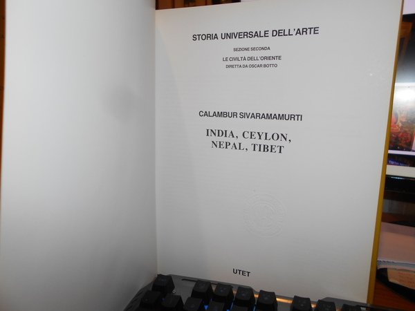 CALAMBUR SIVARAMAMURTI. Torino, UTET, 1988. Storia Universale dell' Arte. INDIA CEYLON NEPAL TIBET. In-4°, tela edit verde con titoli sul piano e al dorso, sovracopertina ill. a col. viii, 304 pp. con numerose illustrazioni a colori e in bianco e nero. Esemplare come nuovo. Uff. stanzetta mob. a destra