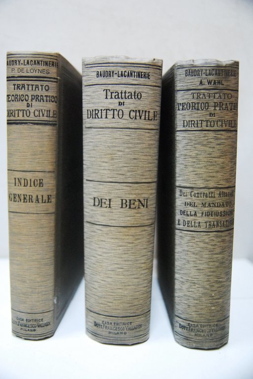 Baudry Wahl Lacantinerie De Loynes Indice generale, dei beni, dei contratti aleatori del mandato della fideiussione e transazione. Vallardi OTTIME RIGIDA .
