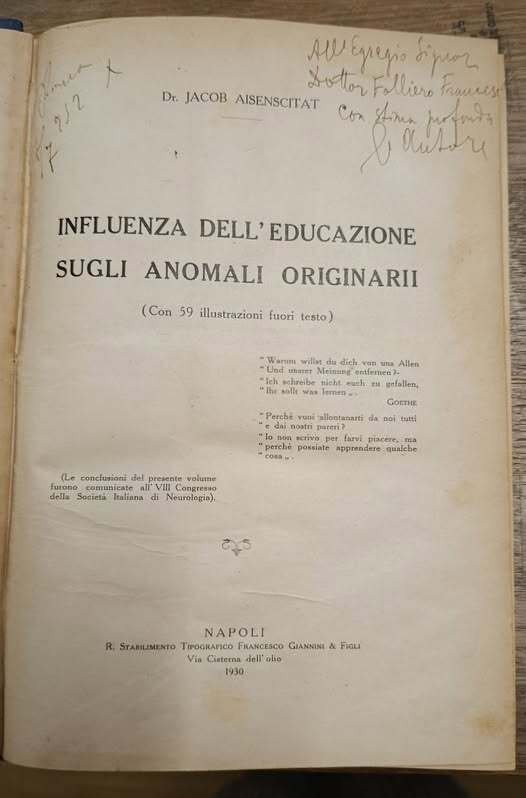 Influenza dell'educazione sugli anomali originari | Libri antichi e moderni | Aisenscitat, Jacob, ,Aisenscitat, Jacob