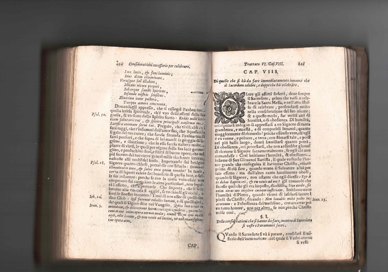 In 16°, cart. muta, cc.nn. 6 + pp. 511. Capilettera. Appunti manoscritti sul front. e sull'ultimo foglio bianco. Antichi forellini .