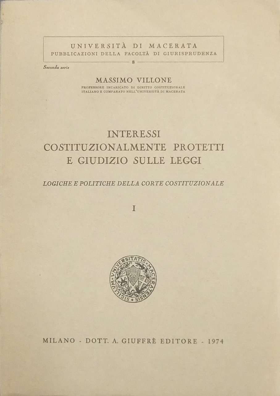 Interessi costituzionalmente protetti e giudizio sulle leggi. Logiche e politiche della corte costituzionale. Vol. I (unico pubblicato) | Libri antichi e moderni | Villone Massimo