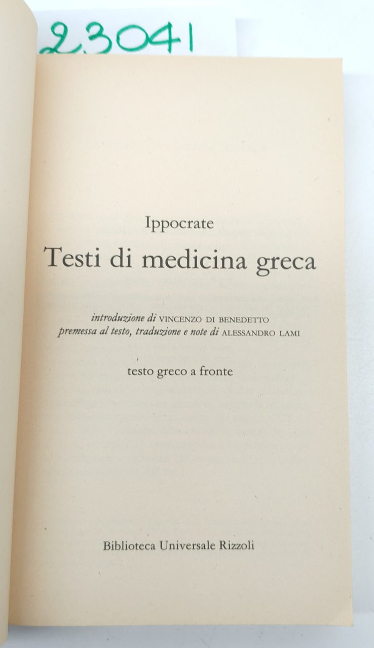 Ippocrate Testi di medicina greca BUR Rizzoli 3° edizione 1991