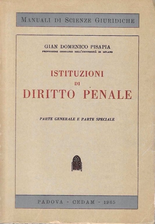 Istituzioni di Diritto Penale. Parte generale e parte speciale | Libri antichi e moderni | Pisapia, Giandomenico, ,Pisapia, Giandomenico