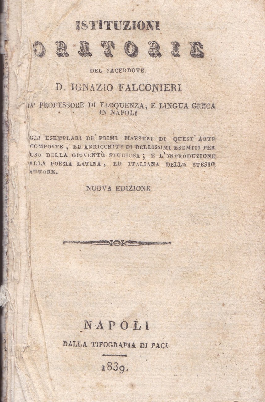 Istituzioni oratorie | Libri antichi e moderni | Ignazio Falconieri, ,Ignazio Falconieri