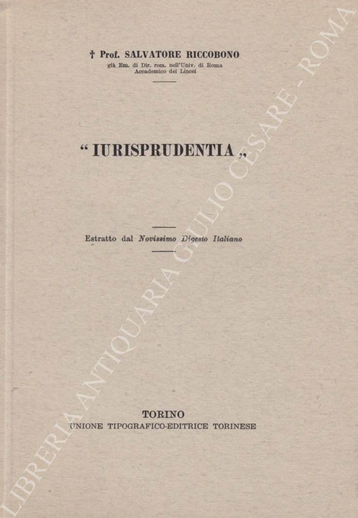 "Iurisprudentia". Estratto dal Novissimo Digesto Italiano | Libri antichi e moderni | Riccobono Salvatore (1864-1958)