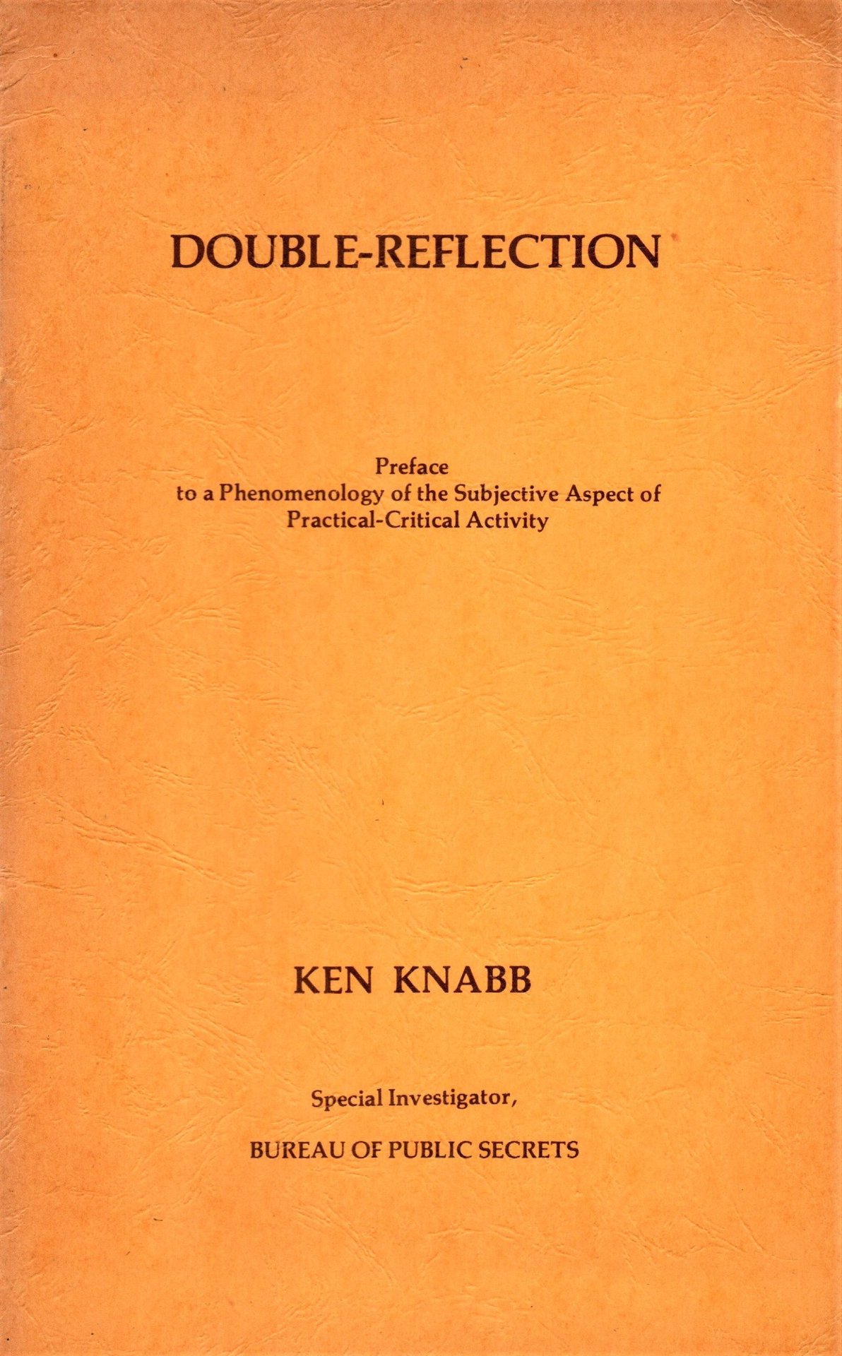 Knabb Ken, Double-reflection. Preface to a Phenomenology of the Subjective Aspect of Pratical-Critical Activity | Libri antichi e moderni | (Situazionismo) Knabb Ken