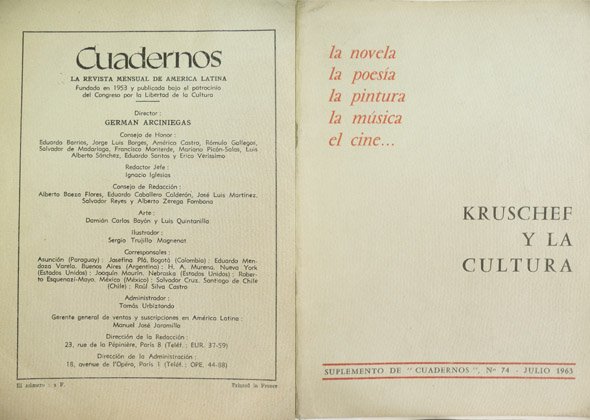 Kruschef y la Cultura. Suplemento de "Cuadernos", Revista Mensual de América Latina, No.74.