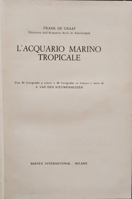 L'acquario marino tropicale | Libri antichi e moderni | Frank De Graaf, ,Frank De Graaf