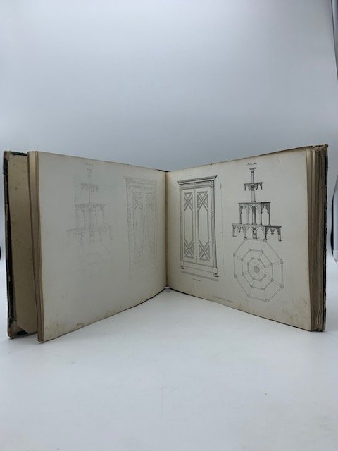 In 16 oblungo (cm 28,5 x 20,5), pp. (2) con frontespizio, seguono 50 tavole incise in litografia. Legatura coeva in mezza pelle. Pubblicazione uscita a dispense tra 1843 e 1844, suddivisa in piu' parti, ciascuna con 50 tavole. Le tavole qui incluse comprendono la Classe C, ovvero i lavori di falegnameria, fra i quali: porte di vario tipo con o senza vetri, guardaroba, tavolo e sedia per giardino, scala a chiocciola, scansia con banco, canape' a tre piazze con ombrello snodato per giardino, soffitto, vetrina di bottega, caffehouse, biblioteca con scrittoio, scansie con specchiere per botteghe, scansie e banco per farmacia, presbiterio, confessionario, ecc. Le altre classi erano: A. Tappezzieri; B. Ebanisti; D. Fabbri ferrai; E. Fabbricatori di carrozze e di oggetti di selleria; F. Argentieri, bronzisti, cesellatori, lattonai.