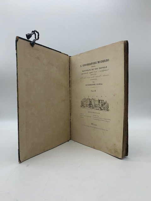 In 4 (cm 20,5 x 28,5), pp. (2) con frontespizio, seguono 50 tavole incise in litografia. Legatura coeva in mezza pelle. Pubblicazione uscita a dispense tra 1843 e 1844, suddivisa in piu' parti, ciascuna con 50 tavole illustrate. Le tavole qui incluse comprendono la Classe B, ovvero i lavori di ebanisti e fabbricatori di mobili fra i quali: sedie, letti, buffe'-etagere, tavoli, poltrone, scrittoio, fioriera, pavimenti, armadi, canape', biliardo, letti, scranni, ecc. Le altre classi erano: A. Tappezzieri; C. Falegnami; D. Fabbri ferrai; E. Fabbricatori di carrozze e di oggetti di selleria; F. Argentieri, bronzisti, cesellatori, lattonai.