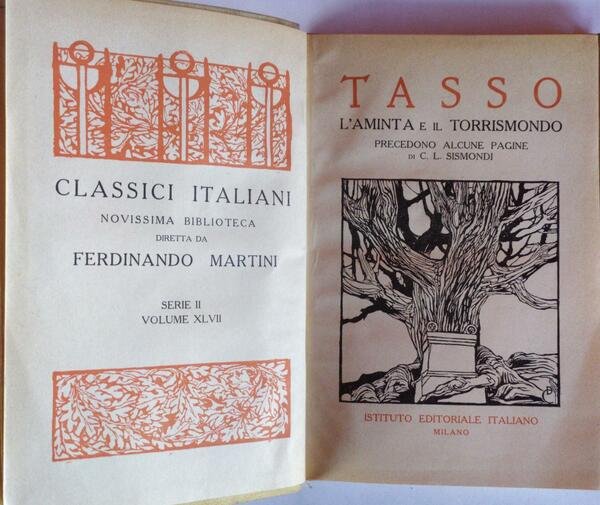 Copertina in eco pelle, sporca e ingiallita. Pagine ingiallite, tagli sporchi di polvere e ingialliti. Collana:"Classici italiani, Nuovissima Biblioteca, raccolta Martini, Serie II Volume 47". Mediocre (Poor) .