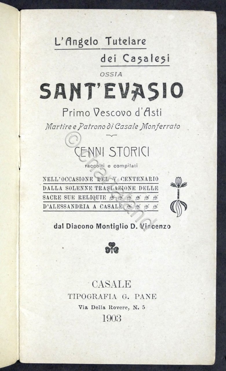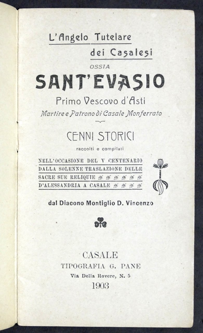L'Angelo Tutelare dei Casalesi ossia Sant'Evasio - Cenni storici - 1^ ed. 1903 | Libri antichi e moderni |