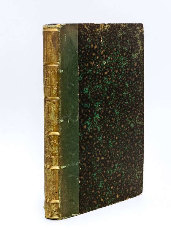 1 vol. in-12 reliure demi-basane verte, initiales G. L. (Gustave Labat) au dos en queue, L'Anti-Joseph ou Bien plaisant et Fidèle narré d'un Ministre de la religion prétendue vendu publiquement dans un coffre pour cause de sa lubricité. Réimpression textuelle de l'édition de 1615 avec Notice bibliographique par L.-B. de F., couvertures conservées, Charles Lefebvre, Bordeaux, 1876, VIII-20 pp. et 1 f. blanc [ Avec : ] En Steamer. D'Europe aux Etats-Unis. Histoire, Souvenirs, Impressions de Voyage, couvertures conservées, Imprimerie Lepelletier, Havre, 1867, XV-287 pp. avec 3 cartes dépliantes Très rare exemplaire, provenant de la bibliothèque du grand bibliophile bordelais Philippe Louis de Bordes de Fortages (avec deux ex-libris), de l'édition originale, dédicacée par Ernest Berchon (à un membre de l'Académie de Bordeaux), de son ouvrage "En Steamer". L'ouvrage se décompose en 5 parties : Histoire re?trospective ; Les services transatlantiques ; Le voyage d'Europe à New-York ; Comme on vit a? bord ; New-York. On a joint un tirage limité établi par les soins de Bordes de Fortages. Bon état (dos un peu frotté, ex-libris de l'érudit bordelais Gustave Labat, très bon état par ailleurs). Sabin, 4817
