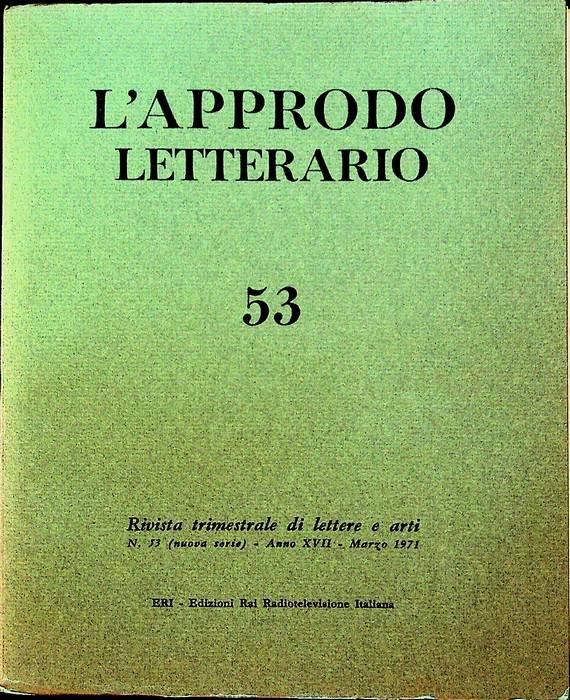 L'approdo letterario: rivista trimestrale di lettere e arti: N. 53 (nuova serie) - A. XVII - marzo 1971. | Libri antichi e moderni |