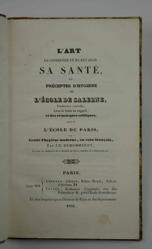 L'art de conserver et de rétablir sa santé, ou Préceptes d'hygiène de l'école de Salerne… | Libri antichi e moderni | Demommerot J.B.
