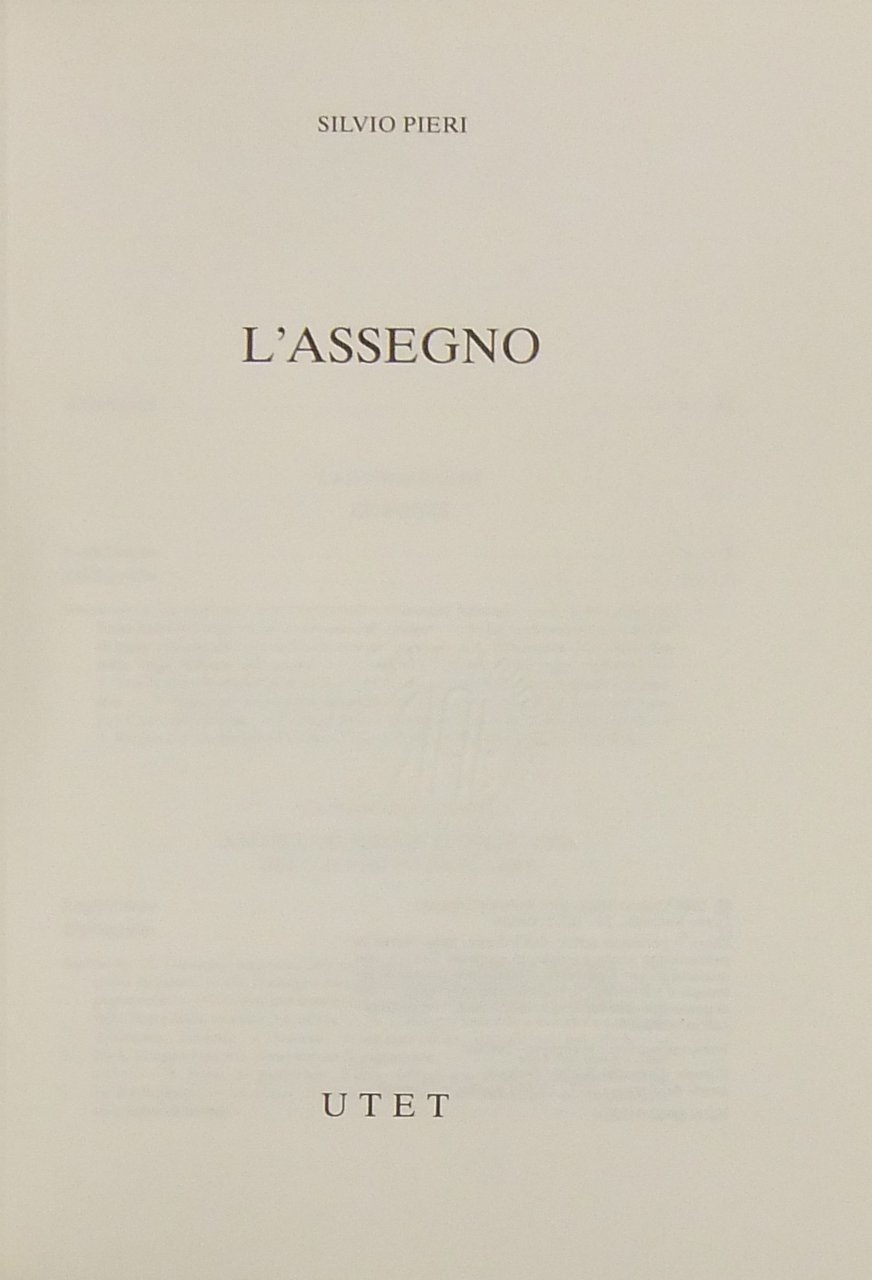 L'assegno | Libri antichi e moderni | Pieri Silvio