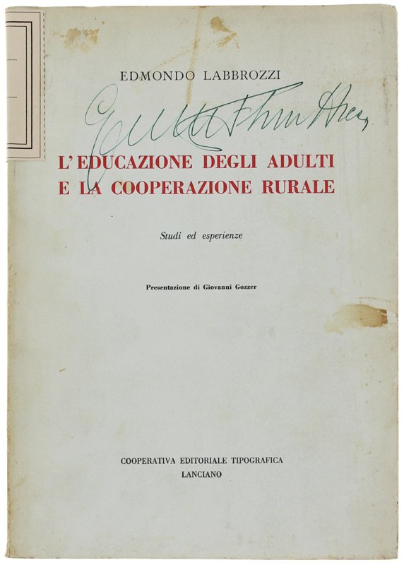 L'EDUCAZIONE DEGLI ADULTI E LA COOPERAZIONE RURALE. Spunti ed esperienze. | Libri antichi e moderni | Labbrozzi Edmondo.