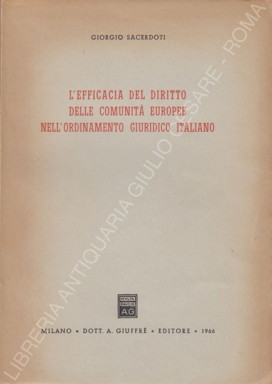 L'efficacia del diritto delle Comunità Europee nell'ordinamento giuridico italiano | Libri antichi e moderni | Sacerdoti Giorgio
