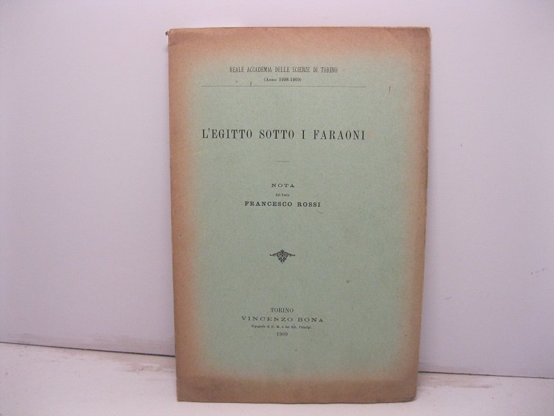 L'Egitto sotto i faraoni. Nota | Libri antichi e moderni | Rossi Francesco